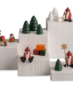 Weihnachtsmann auf Kante sitzend mit Baum und Geschenken, Miniaturset 1