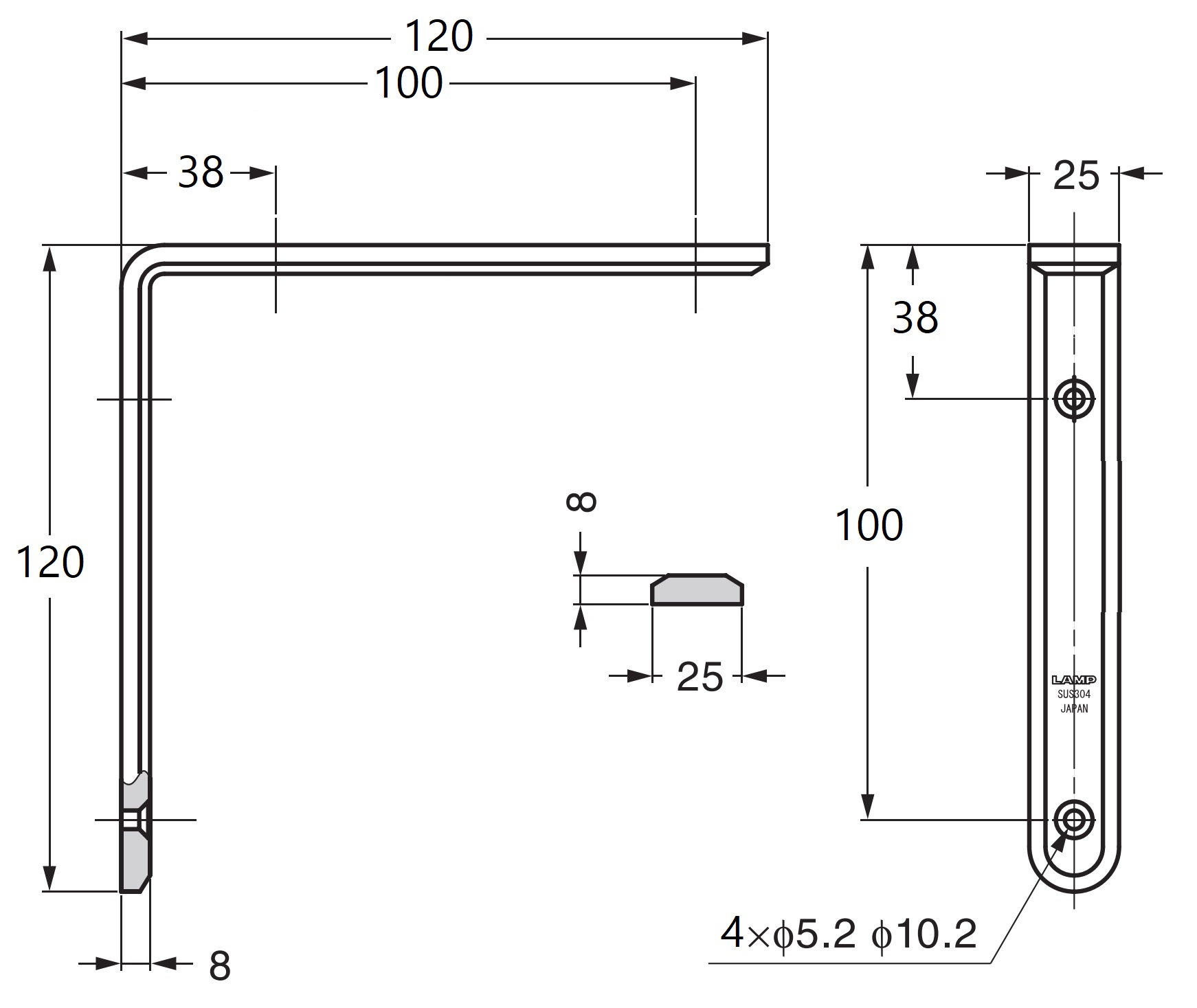 Die Montagewinkel XL-SA01-120M sind aus massivem 8 mm (5/16″) dickem Edelstahl SUS304 hergestellt.