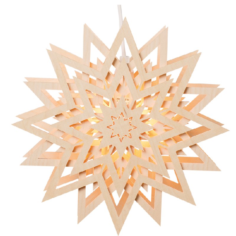 Das Fensterbild Stern, elektrisch wird aus naturbelassenem edlem Holz von der Firma Taulin handgefertigt.