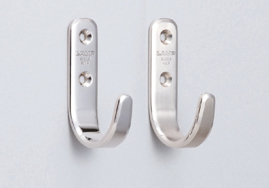 Hochwertiger Edelstahlhaken, aus massivem rostfreiem Edelstahl, Tragkraft: 10 kg, Oberfläche: matt und poliert, 55 mm (2,2″), XL-HJT55TT. Edelstahlwandhaken für Garderobe, Badezimmer, Außenbereich und viel mehr, von Sugatsune / LAMP® (Japan)