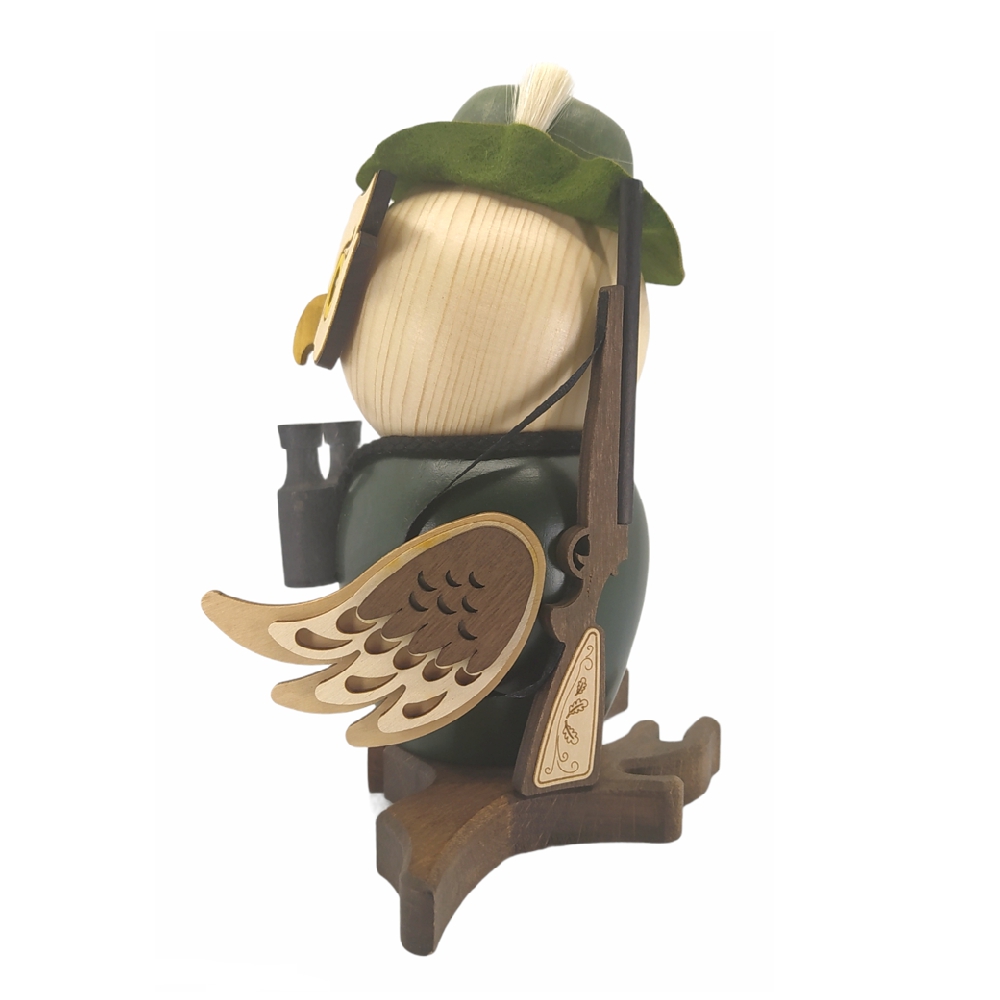 Diese liebevoll sowie detailreich gestaltete Räucherfigur Eule Jäger kommt aus dem Hause Kuhnert und erweitert die Serie der Eulen.