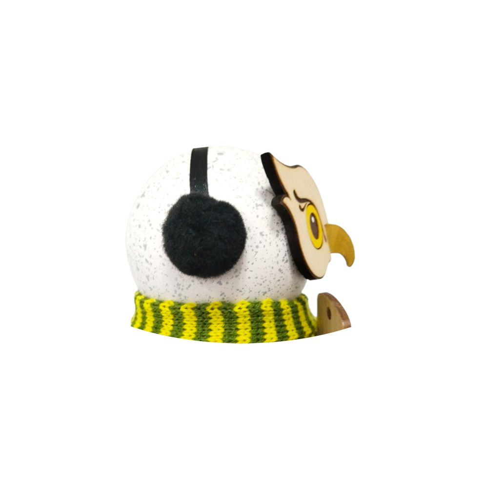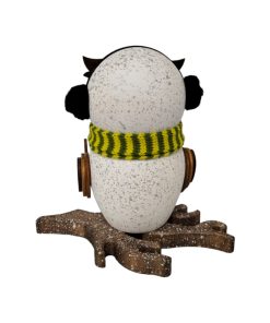 Mit gestricktem Schal sowie Ohrenwärmer hält diese bezaubernde Schneeeule ein Thermometer in der Hand dessen Temperatur auf unter 19 Grad gefallen ist.