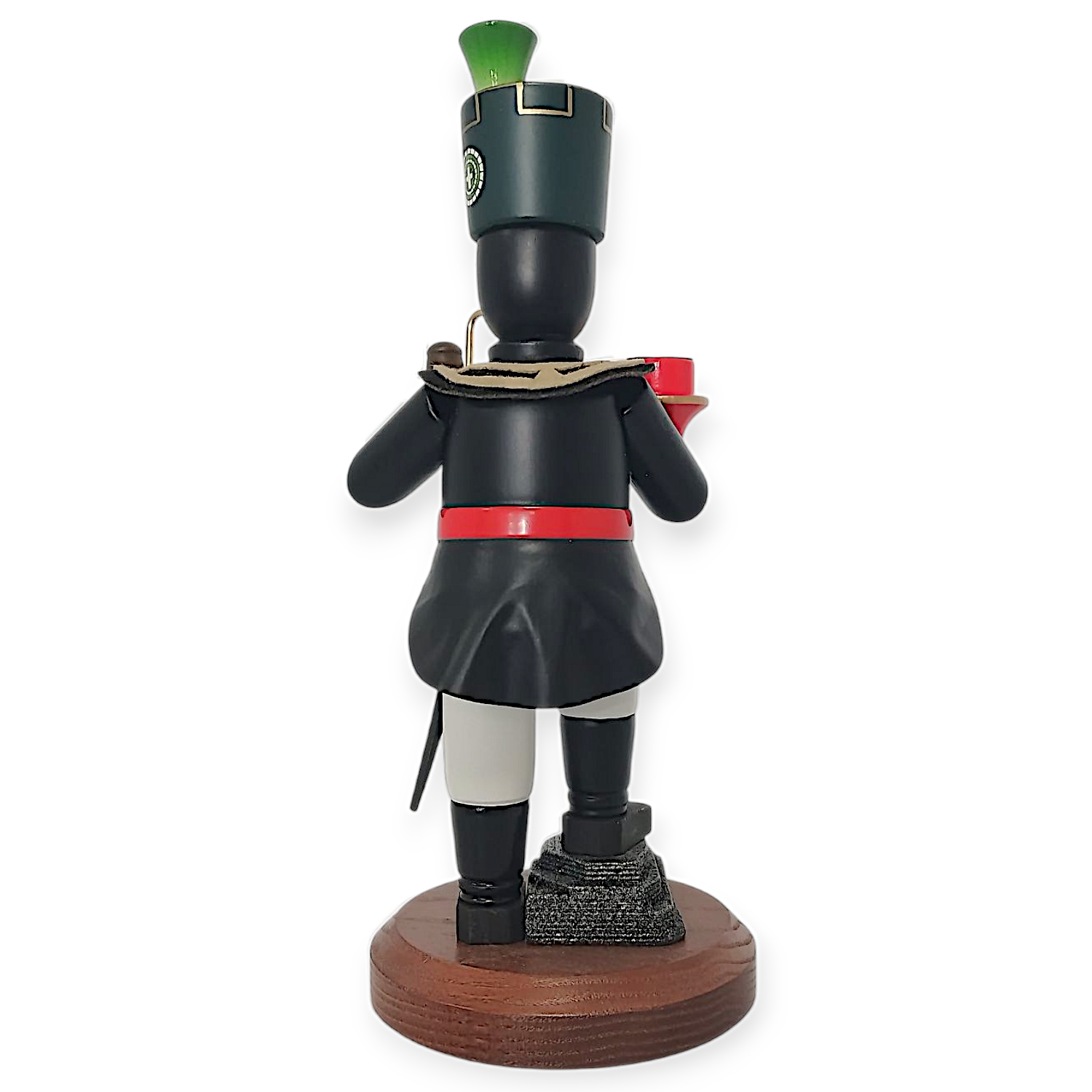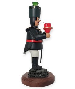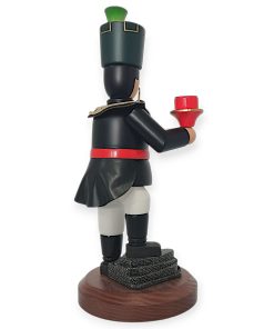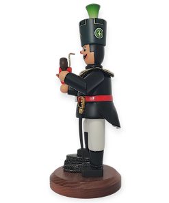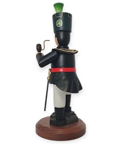 Die Knickbeinform seiner Beine verleiht ihm eine lebendige und charmante Pose. Trotz der traditionellen Uniform wirkt seine Haltung locker und sympathisch. Die liebevolle Bemalung und die feinen Details zeugen von handwerklicher Meisterarbeit.