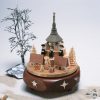 Die gesamte Szene strahlt eine festliche und liebevolle Atmosphäre aus. Das musikalische Herzstück dieser Spieldose ist ein 18-stimmiges Spielwerk, das die beliebte Melodie “Oh Tannenbaum” erklingen lässt. Die Klänge der Melodie verstärken den nostalgischen Charme der handgefertigten Figuren und der detailreichen Dekoration dieser festlichen Spieldose.