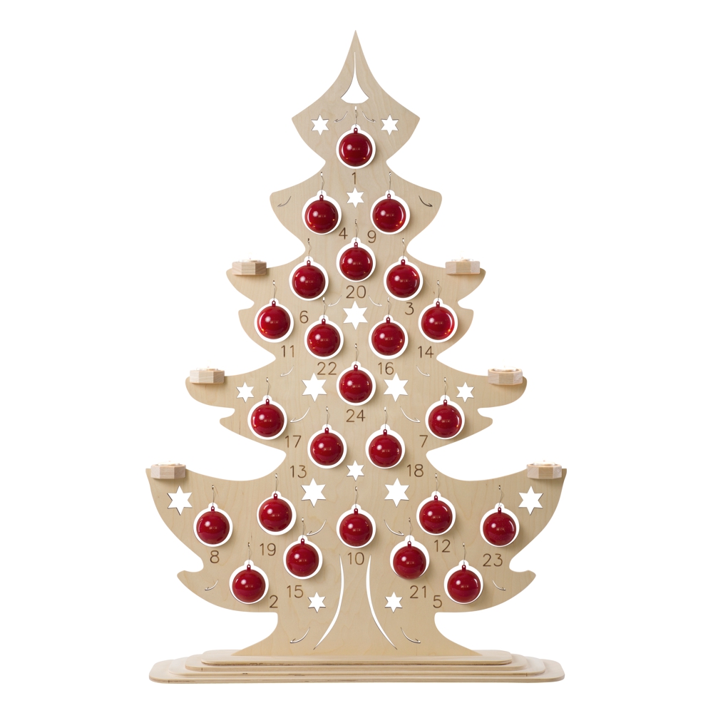 Das Besondere an diesem Kalender ist seine Gestaltung. Er ist mit 24 roten Holzkugeln geschmückt. Diese Kugeln sind abnehmbar, da sie an kleinen Haken hängen. Sie können die Kugeln individuell befüllen. Jede Kugel hat eine aufgedruckte Zahl von 1 bis 24. Somit begleiten die Kugeln Sie Tag für Tag durch die Adventszeit. Es ist eine wunderschöne Tradition, jeden Tag eine neue Überraschung zu finden.